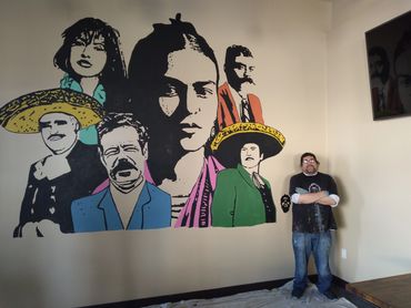Esquivel creates designs based on client request. Once a design is approved, he uses a projector to display the image and trace it onto the identified location. The paintings can take a matter of weeks to complete, depending on the size. Some take up a corner of a wall, others stretch down the entire wall of a restaurant or school.