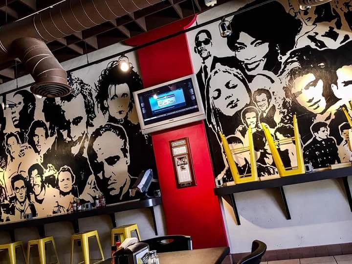 His work can be seen in multiple downtown Fresno restaurants: the walls inside Take 3 are covered with Esquivel's depiction of movie stars including Harrison Ford and Johnny Depp. Kocky's Bar and Grill features a similar mural with musicians, and his art can be seen at Papi's Mexican Grill in Fresno and Madera, and El Mexicanoin Fowler. He recently created a mural inside the Amazon warehouse location in Fresno. The mural pays homage to Fresno city and history